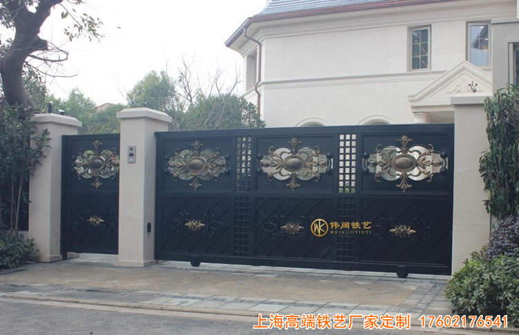 獨棟別墅鐵藝庭院門定做 在近年,別墅鐵藝大門的銷量為何節節上升?別墅鐵藝大門為何越來越受廣大市民的青睞?很多家庭裝修都開始趨向別墅鐵藝大門的選擇,這是為什么呢